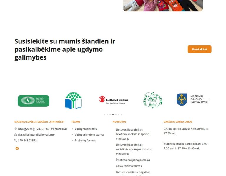 We created a clear, approachable website for Gintarėlis Nursery and Kindergarten in Mažeikiai that helps families access essential information quickly. The new site presents the institution’s values, daily life and educational environment in a way that feels warm, trustworthy and easy to navigate.