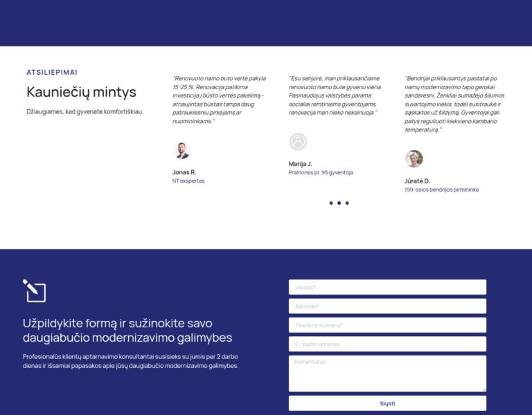 We designed and developed a website for the Kaunas Housing Modernisation Agency that makes housing modernisation information clearer and easier to access. Built to meet WCAG standards, the platform helps residents, building representatives and other stakeholders find the guidance they need with confidence.