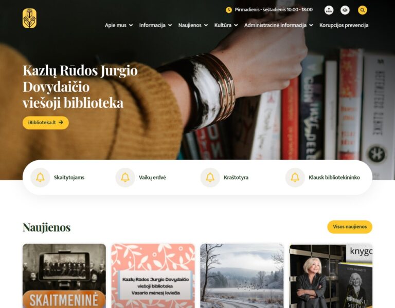 We designed and developed a modern website for Kazlų Rūda Public Library to make its services, events and resources easier to access online. The project supports the library’s role as a cultural and educational centre by giving residents a clear, inclusive digital experience.