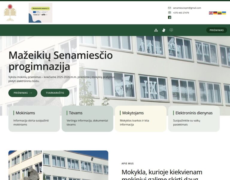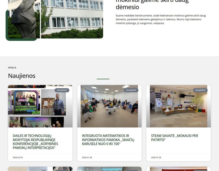 We created a contemporary website for Mažeikiai Old Town Progymnasium that presents the school clearly to pupils, parents and the wider community. The new platform supports day-to-day communication and reflects the school’s forward-looking approach to education.