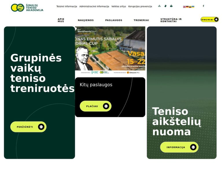 We designed and developed a new website for Šiauliai Tennis Academy to present its programmes, events and community activity in a clear and accessible way. The platform helps players, parents and visitors find essential information quickly while supporting the academy’s public presence online.